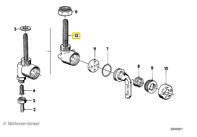 Karcoma-Benzinhahn linke Seite für alle 2V-Modelle mit abgewinkeltem Abgang